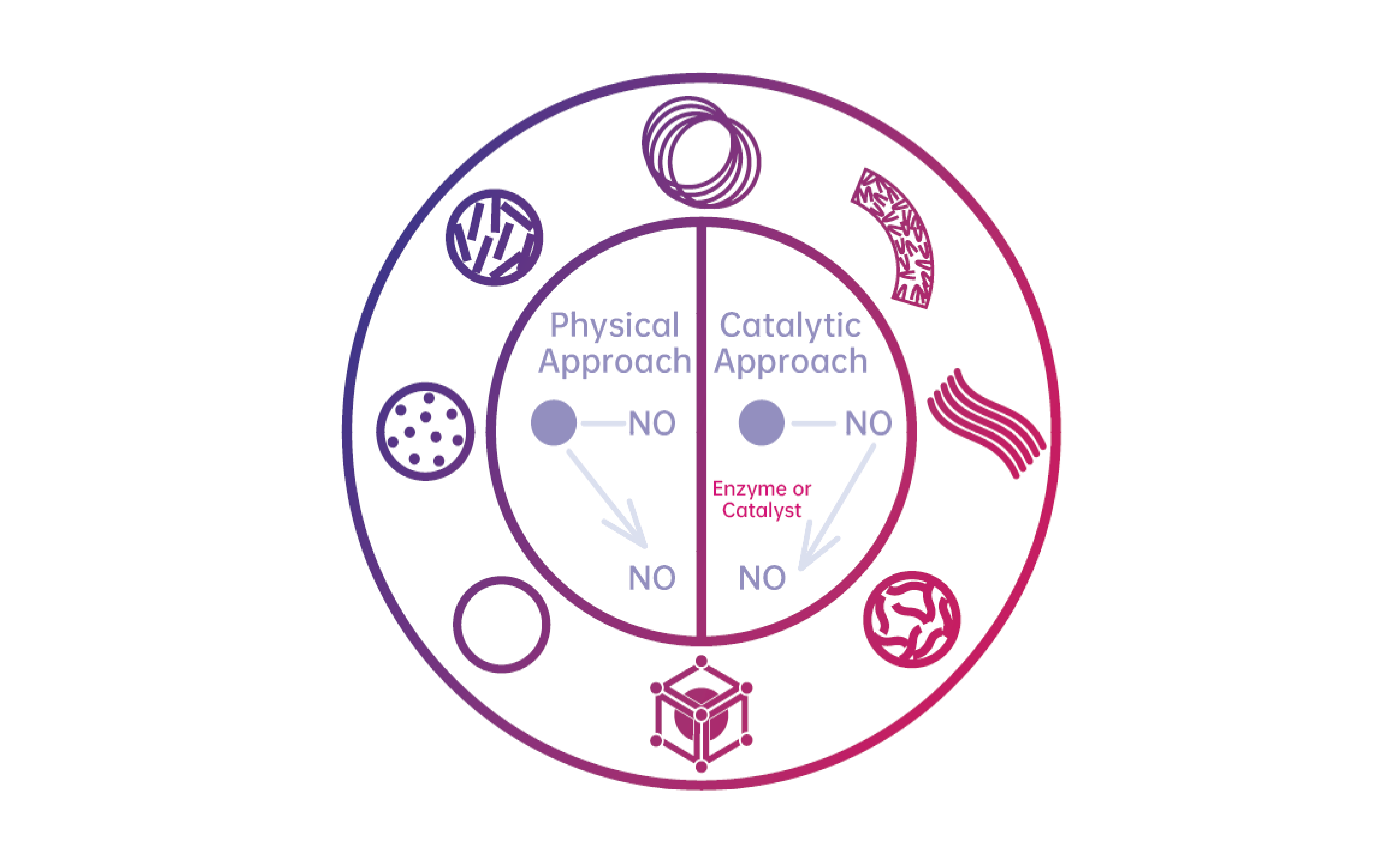 NO緩釋技術基于多種NO供體(能在特定條件下釋放出NO的多種化合物),在供體分子設計、氣體負載技術、緩釋條件控制及工藝生產上對各種負載材料技術進行深入研究,可以根據不同應用需求場景提供NO緩釋材料及產品,滿足不同的醫(yī)療、消費需求。
